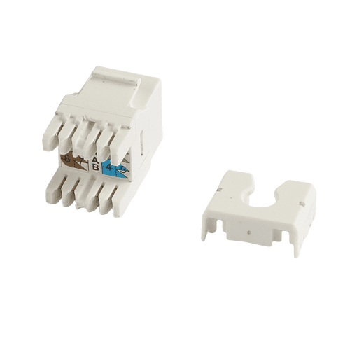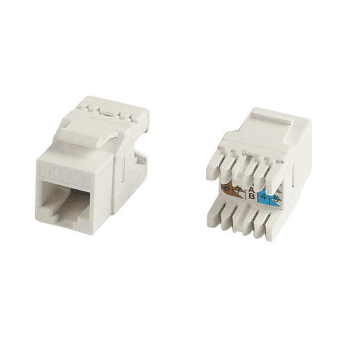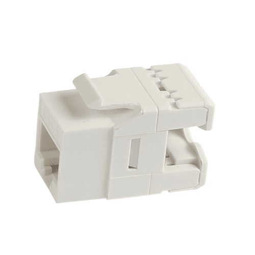 RJ-45 keystone jacks are 8-position 8-conductor (8P8C), support both T568A and T568B wiring and are designed for 22-26 AWG twisted pair cable. We offer many tests to guarantee the quality of every shipment to meet and ensure high performance. Our Cat5e/Cat6/Cat6a/Cat6 total cabling solution products can fulfill your high-speed transmission requirements from telecommunication rooms to work areas. All jacks are compliant with UL 1863 and come with a 25-year warranty.
