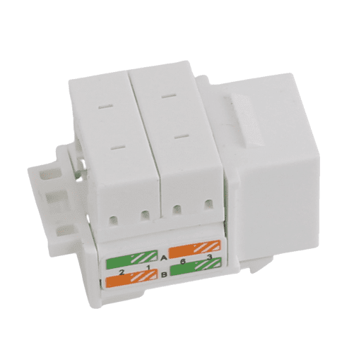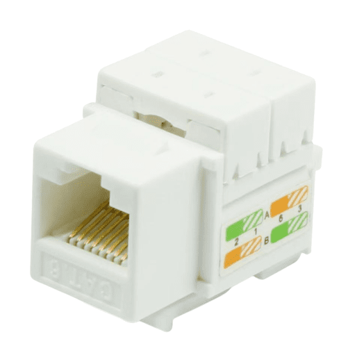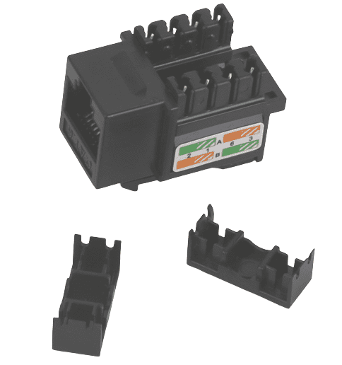 RJ-45 keystone jacks are 8-position 8-conductor (8P8C), support T568A and T568B wiring and are designed for 22-26 AWG twisted pair cable. We offer many tests to guarantee the quality of every shipment to meet and ensure high performance. Our Cat5e/Cat6/Cat6a/Cat6 total cabling solution products can fulfill your high-speed transmission requirements from telecommunication rooms to work areas. All jacks are compliant with UL 1863 and come with a 25-year warranty.