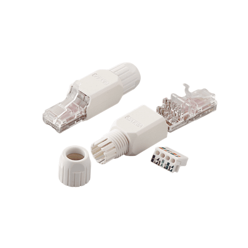 RJ-45 Modular Plug(Fast Connector) Toolless is 8-position 8-conductor (8P8C), supports T568A and T568B wiring, and is designed for 22-26 AWG twisted pair cable. Easy to assemble without tools. We offer many tests to guarantee the quality of every shipment to meet and ensure high performance. Our Cat6/Cat6a/Cat7/Cat8 total cabling solution products can fulfill your high-speed transmission requirements from telecommunication rooms to work areas. All Fast Connectors are compliant with UL 1863 and have a 25-year warranty.